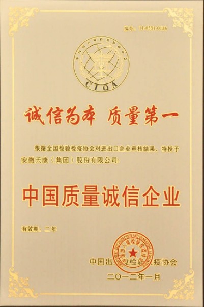 中國(guó)誠(chéng)信質(zhì)量企業(yè)