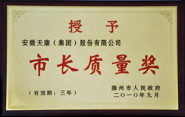 滁州市市長(zhǎng)質(zhì)量獎(jiǎng)